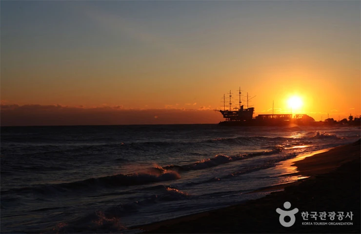 동해안 최대 해변으로 유명하며, 강문동, 안현동에 있고 시내에서 북으로 6km, 경포대에서 1km되는 곳에 동해의 창파를 가득 담고 펼쳐진 명사오리(明沙五里)이다. 모두를 삼키기라도 하려는 듯 밀려오는 파도, 이를 쓸어 안은 길이1.8km, 면적1.44㎢의 하얀 모래밭과, 시끄러운 일상을 조용히 차단하는 울창한 송림병풍의 조화가 해변 특유의 아름다움을 자아낸다. 출처 : 대한민국구석구석(korean.visitkorea.or.kr) → 펜션에서 약 10km, 차로 약 21분 거리